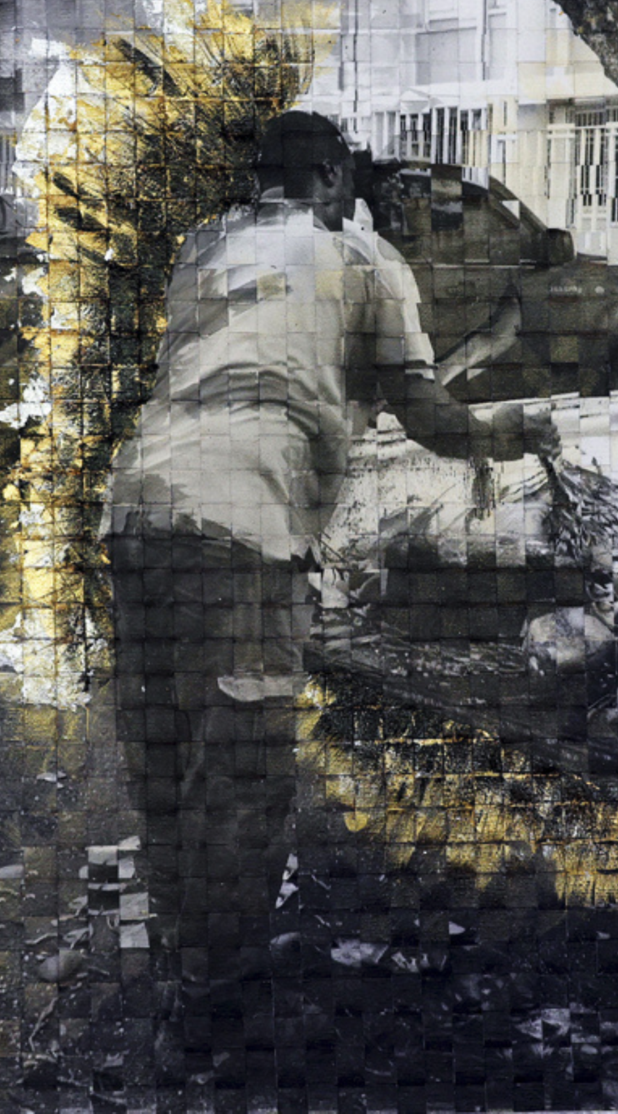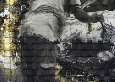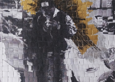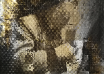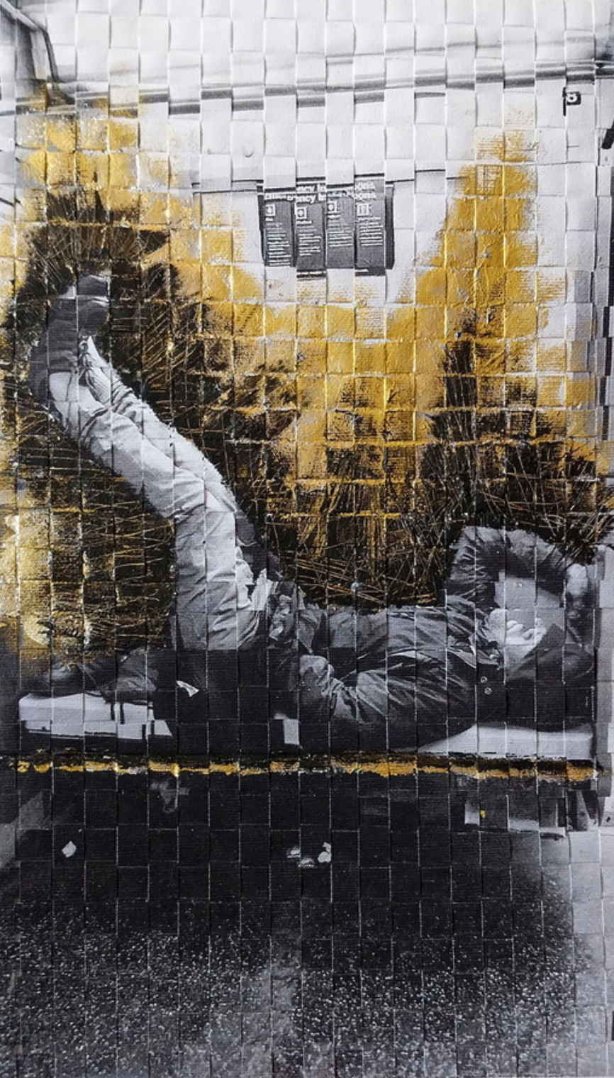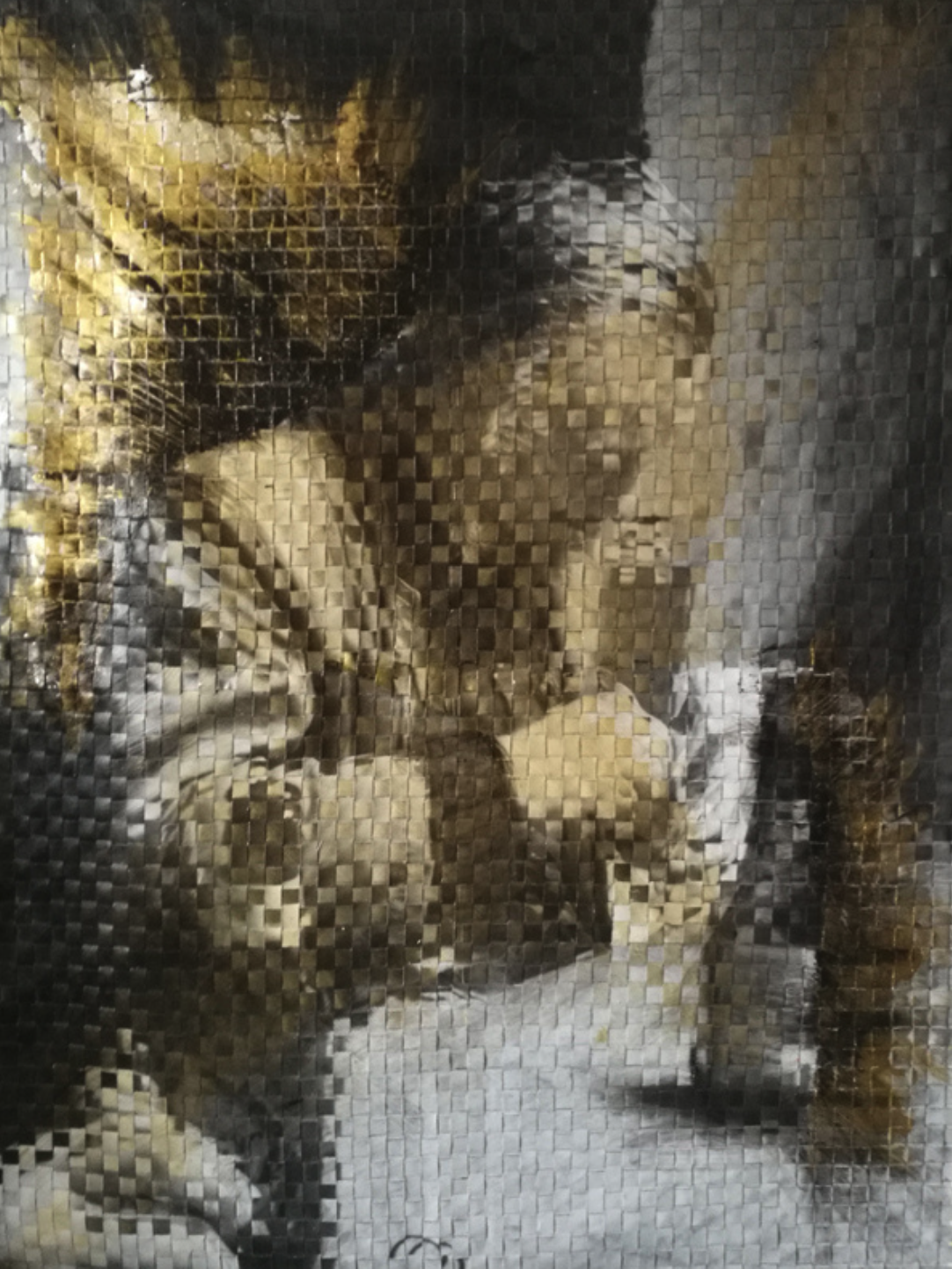 Alexia Tailleur : Sa création se base sur la mise en valeur d’histoires intimes. Ses sujets, anonymes ou non, font tous écho à son univers personnel et sont traités à la manière d’icônes, puis travaillés à la feuille d’or. Par cette mise en lumière, comme une aura, l’artiste les réinsère au cœur de la société, de l’histoire et leur réinsuffle du sacré.