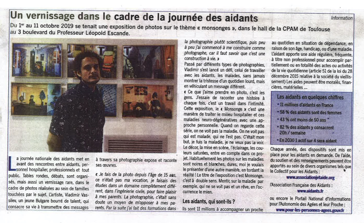 Certaines photographies sont aussi prises au domicile des aidants. Les personnes sur les images sont des patients atteints de maladies neurodégénératives telles que Parkinson, Alzheimer, Corps de Levy , ainsi que les soignants, aidants et bénévoles.
