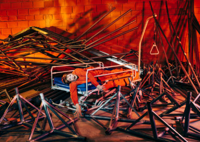 Est-ce un songe ? et mes yeux ne m’ont-ils point trompé ? se questionne Racine tout comme le spectateur, planant dans une ambiguité entre réalité et fiction. Au sein même d’un lieu de soin, où vivent soignants et soignés, chacun songe à quelque chose. Le trouble est semé entre ce qui est réel et ce qui ressort de l’illusion, telle une pièce de théâtre. Dans ces pièges à regard, se trouvent des personnages extra-ordinaires nous transportant dans un monde onirique, où les rêves viennent accomplir des désirs inouis.